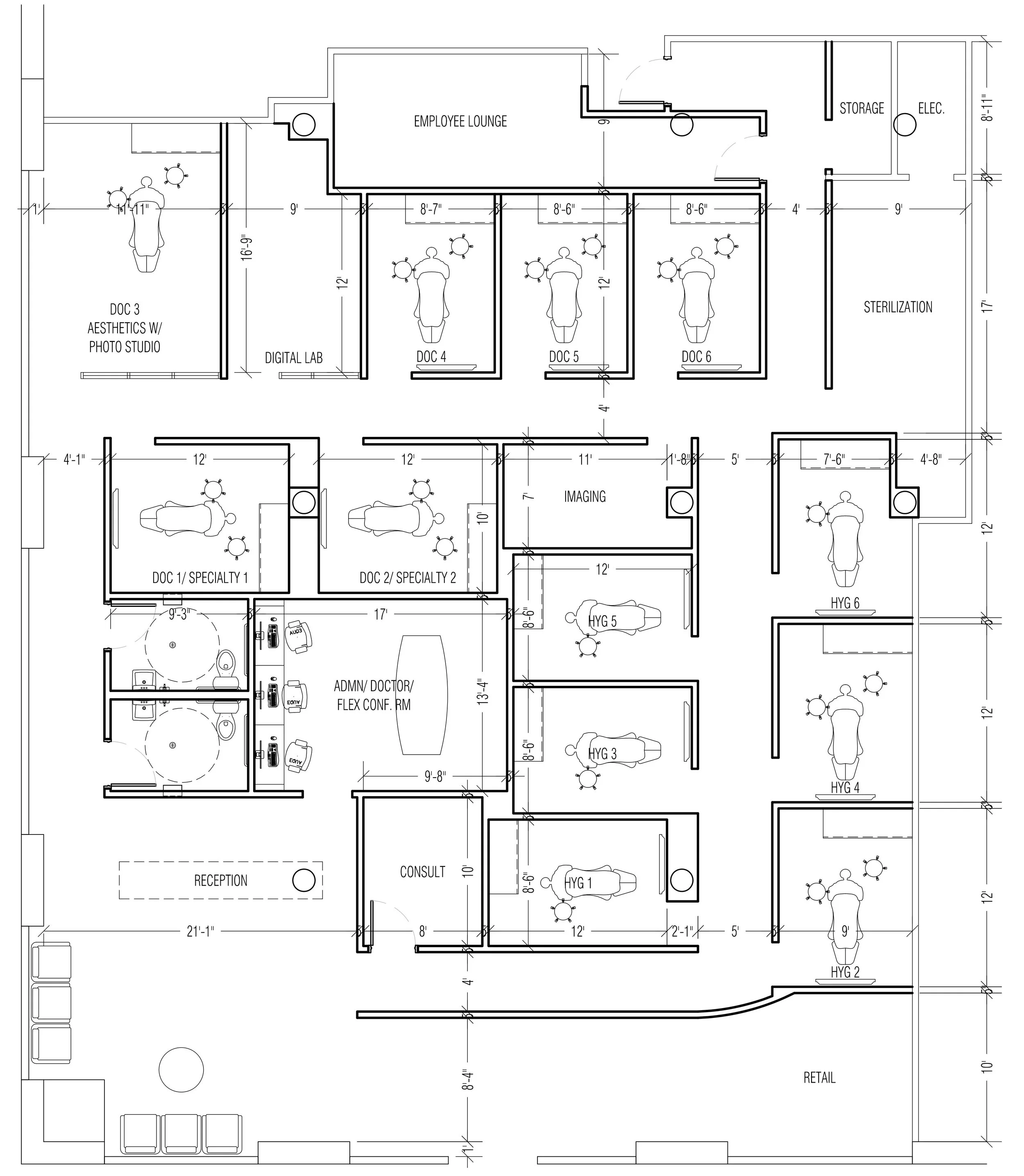 Spacious 4,600 sf layout with 12 private treatment suites